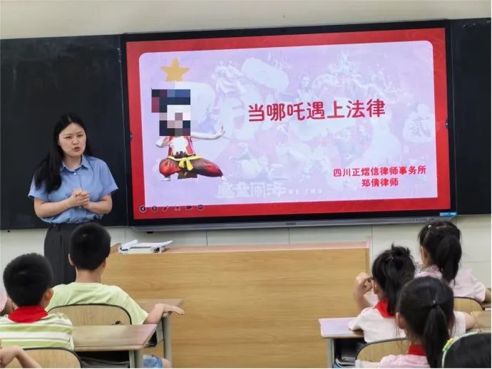 2025年5月23日,四川正熠信律师事务所的郑倩律师走进成都市龙江路小学二年级一班,为小朋友们带来了一场别开生面的《当哪吒遇上法律》专题讲座,以孩子们喜爱的动画角色“哪吒”为切入点,深入浅出地讲解反对校园欺凌和霸凌的法律知识。这场别开生面的普法课,用孩子们熟悉的电影情节诠释法律知识,在欢声笑语中为小朋友们种下了法治的种子。